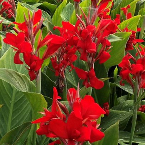 A canna started into growth in February/March in a cool greenhouse, and planted out at the beginning of June, will usually be flowering by July. Start in pots and plant out after frosts. Protect with mulch or dig up and store to overwinter