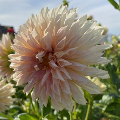 A subtle brown cream with peach tones. Strong growing, a wedding favourite.